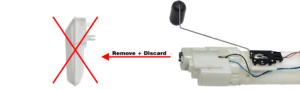 Note: To install the High Flow Fuel Bag, you will need to remove and discard the plastic boot from the stock fuel pump. See the image below for details.